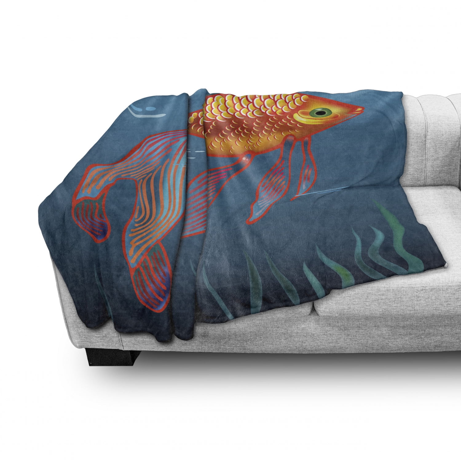 Goldfish Soft Flannel Fleece Throw Blanket Aquarium Illustration Of Golden Fish On Sea Water Background Cozy Plush For Indoor And Outdoor Use 50 X 60 Vermilion Orange By Ambesonne Walmart Com